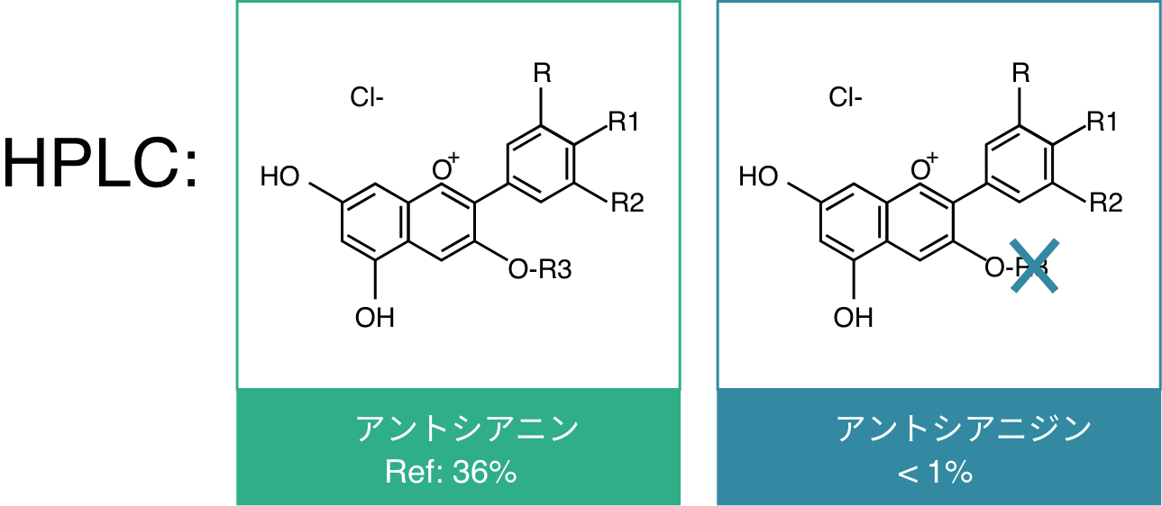 HPLC: 32.4 % < アントシアニン < 39.6 %
