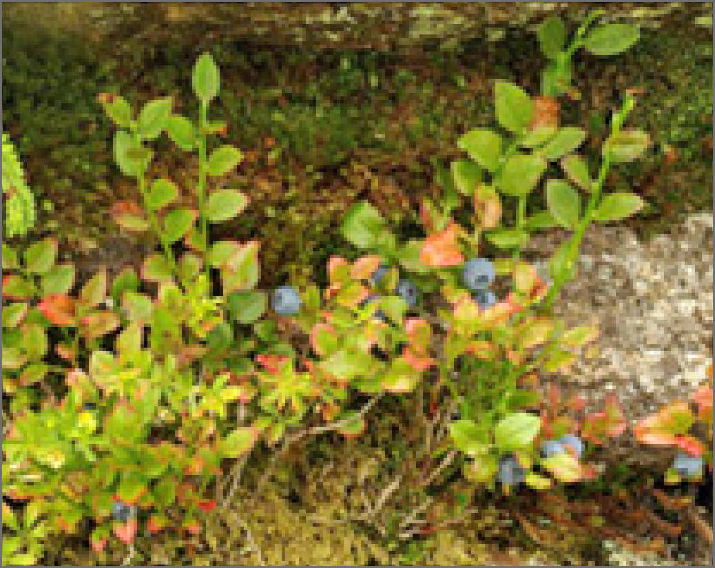 • 針葉樹ノルウェイスプルース森林の中で最も⼀般的な低⽊果実であり、⼟地肥沃に関連する。