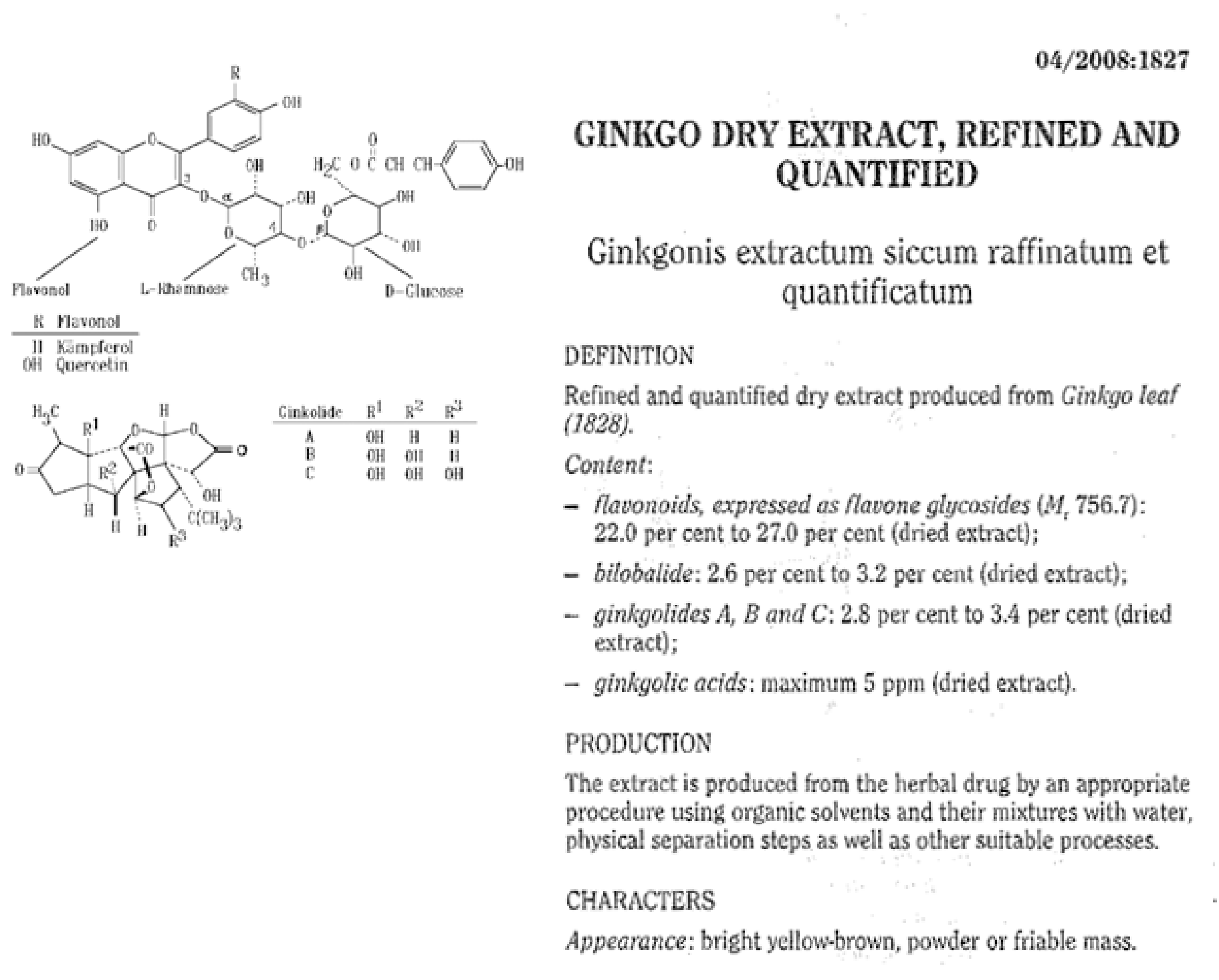 内容: 欧州薬局方(Eph.)に準拠しイチョウ葉フラボン配糖体22.0-27.0% 及びテルペンラクトンを定量化した混合エキス