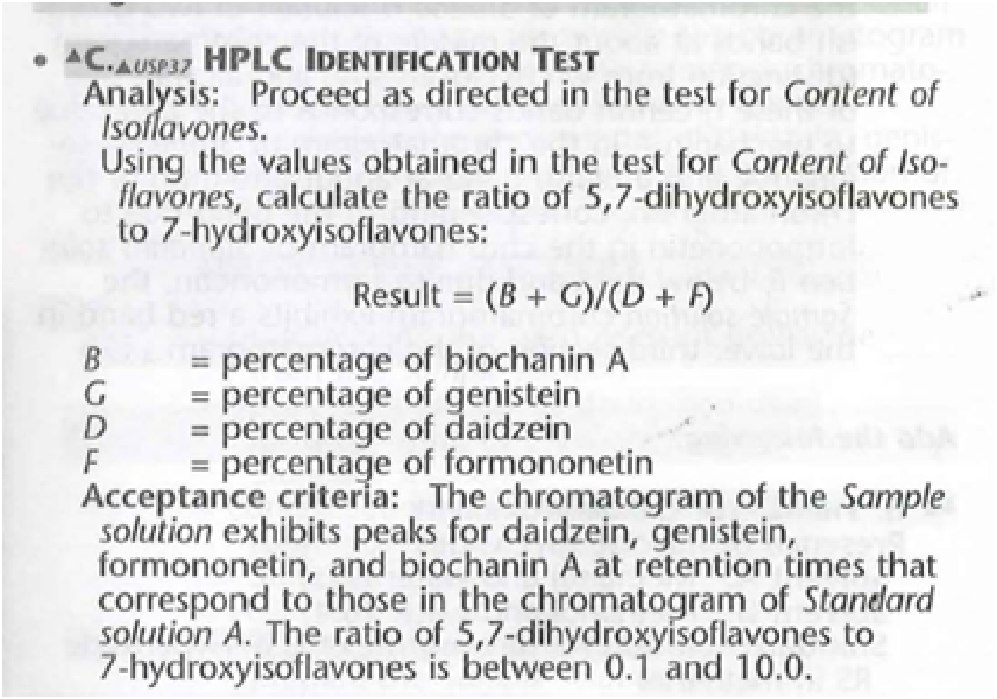 適合規格 (米国薬局方 (USP) 粉体 レッドクローバー 抽出物)